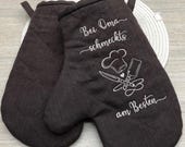 In meinem Atelier nähe ich Patchwork Tagesdecken oder besticke Wohnaccessoires mitdeinem Wunschtext, wie bei diesen personalisierten Ofenhandschuhen und vieles mehr. Perfekte Weihnachtsgeschenke für die ganze Familie. 🙂