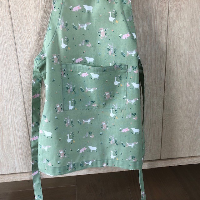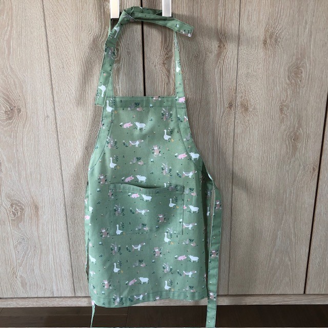 Eine süße Kinderschürze mit farblich passenden Küchenhandschuhen. Ideal zum Spielen in einer Spiele Küche oder zum Backen von Keksen in der Weihnachtsbäckerei.